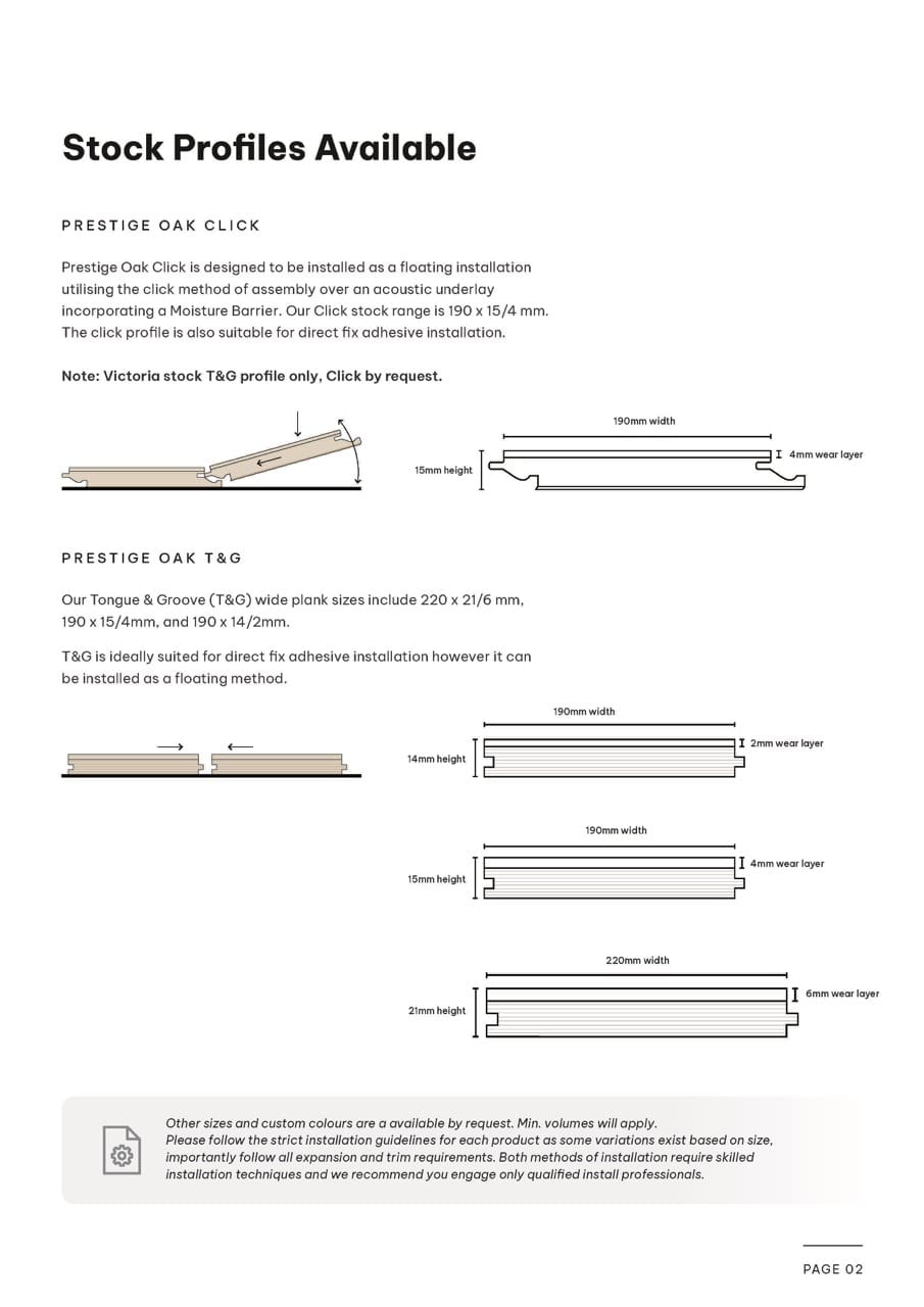 Prestige Oak engineered flooring is available with both Click floating floor systems and traditional Tongue & Groove profiles, providing flexibility for installers and builders.